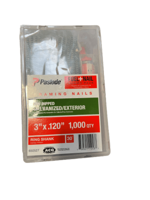 Fuel Cell Framing Nails, Offset Round Head Style, Collation Configuration Coil, Collation Type Tape, Collation Angle 30 Degrees , Shank Dia. 0.12 in, Length 3 in, Diamond Point Type, Ring Shank, Low Carbon Steel, Hot Dipped Galvanized Finish, Coil Quantity -, Stick Quantity 36, For Use With 900425, 902200, Mfr. No. 902600, Includes (1) Fuel Cell and adaptor, Package Quantity 1000