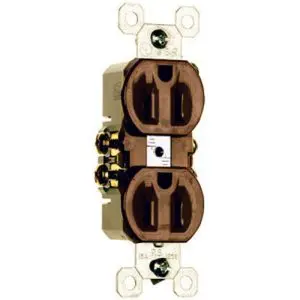15a, 125V, brown, 2 pole, 3 wire Grounding, standard Duplex outlet, UL, superior blade retention prevents plugs from falling out, side & speed wire, unbreakable thermoplastic construction.
