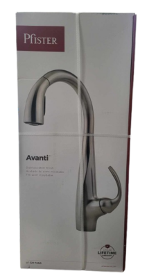 Pfister Avanti is designed on a smaller scale for homeowners who desire the style and functionality of a pull-down, but have more modestly-sized sinks and kitchens. The unique curvature starts at the base of the faucet and twists its way up toward the spout. The curvature gives a bit of contemporary flair to kitchens with a more modern decor, yet remains simple enough to coordinate well with most kitchen styles. The Avanti brings functionality and a sense of personal style to the room.