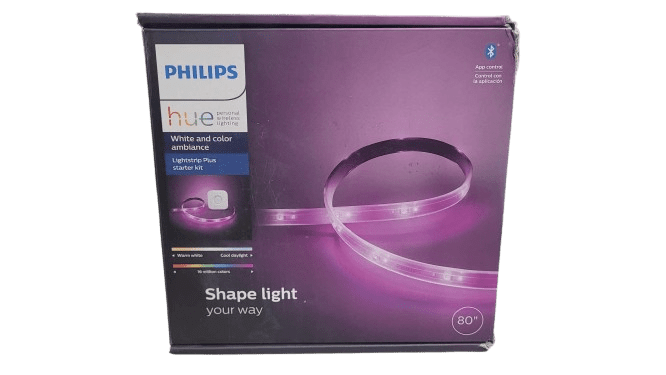 Get colored smart light anywhere in your home with the latest Philips Hue White and Color Ambiance Bluetooth-enabled lightstrip. This base kit includes an 80-inch white and color lightstrip, Smart Bridge, power adapter, and connector box for reattaching cut pieces (only compatible with this model). Need more length? Extend with Philips Hue Bluetooth-enabled 40-inch extensions (up to 32 feet, each sold separately). The Hue lightstrip is flexible, allowing you to bend, shape, cut, and extend it to adapt to your room and decor. Create an immersive experience with smart light by placing it under cabinets, along a bar, or behind entertainment centers. This Hue lightstrip features Bluetooth capability for instant light control in one room. Get hands-free control when you pair with a voice or smart home assistant, such as Amazon Alexa, Google Assistant, and Apple Homekit. This Starter Kit includes a Hue Bridge which unlocks the full suite of smart lighting features like timers, routines, sync with media, and away from home control. The Hue Bridge allows you to add up to 50 lights – indoors or outside – for a full smart home experience.