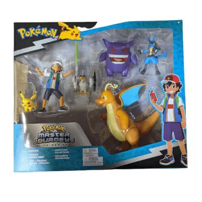 Kickstart your quest with the Pokémon Journeys Battle Figure 5 Pack. Team up with a 4.5-inch figure of Ash Ketchum with his Electric-type Pikachu as they appear in their unique design from Pokémon Journeys. Also along for the ride are a 3-inch Fighting- and Steel-type Lucario, a 3-inch Fighting-type Sirfetch’d, a 4.5-inch Ghost- and Poison-type Gengar and a 12-inch Normal-type Dragonite. Display these Pokémon alongside your other Battle Figures and prepare for the ultimate trip. Officially licensed Pokémon product from Jazwares. Ages 4+