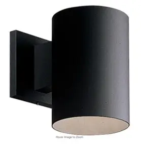 Add a modern touch to your household exterior with this cylindrical 1-Light Black Outdoor Wall Lantern from Progress Lighting. Measuring 5 in. Dia and 7-1/4 in. H with heavy-duty aluminum construction, it has a closed top and open bottom to shine light downward on architectural features, landscape greenery or whatever borders your home. The sleek design of this wall-mount fixture offers a superb low-profile option for illuminating building exteriors. A weather-resistant powder-coated finish protects this stylish lamp from harsh environs and the fixture is UL Listed for wet locations to withstand damp conditions.