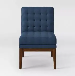 Comfort and style come together to make this Tufted Slipper Chair with Wood Base from Project 62™. The modern construction of this sturdy chair gives you a great piece that can be used as extra seating in your living room, bedroom or home office. The tufted design gives dimension to the chair.