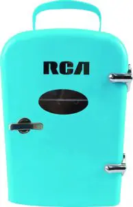 Keep snacks fresh with this retro-inspired cooler. It features a design based on retro themes from the middle of the 20th century. This RCA beverage fridge can hold up to six 12 oz cans at once, which makes it ideal for having a few friends over. It has room for your snacks and beverages so you can get you through your big study session or long day at the office. It’s designed to easily fit where you need it on your desk, on your boat, at the lake house, in your man cave, in a dorm or apartment.