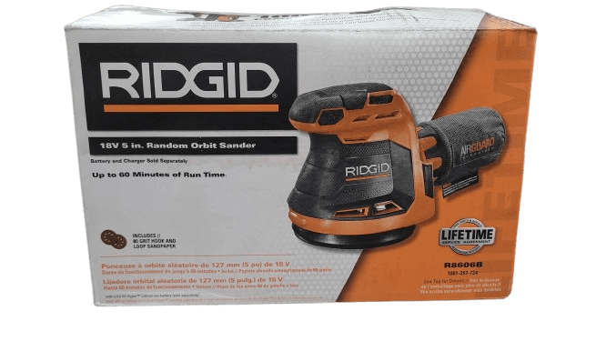 RIDGID introduces the 18V Cordless 5 in. Random Orbit Sander (Tool Only). Featuring innovative motor technology, this sander maintains full speed and power under a heavy load. With a new ergonomic Hex Grip handle, this sander feels better than ever in your hand and runs for over 40 minutes on a 4.0 Ah Lithium-Ion Battery. With a 6-Speed variable speed dial this sander can run from 7,000-11,000 RPM.