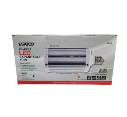 Satco second generation Hi-Pro shoebox lamps have just gotten a whole lot smarter. The lamps are suitable for new lamps and metal halide replacements. The Gen2 shoebox lamp offers higher efficiency, improved heat dissipation, and a port for mounting motion sensor, photocell, or Wi-Fi accessories. The unique design of its expandable sides helps to make for an easy installation. When opened in position, the lamp delivers a 180 degree beam angle that focuses light distribution to where it is needed most.