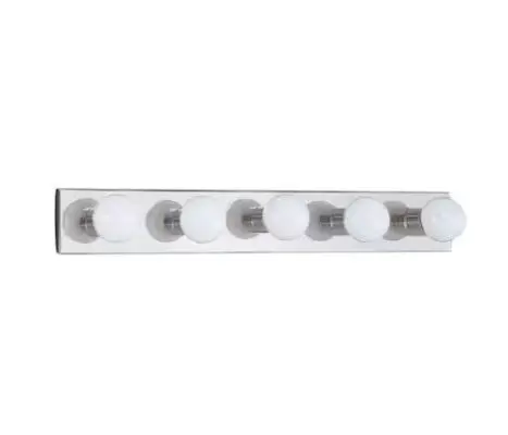 The Center Stage five light vanity bar fixture in chrome provides abundant light for your bath vanity, while adding a layer of today’s style to your interior design. Center Stage bath and dressing room lighting by provides generous illumination with few shadows. Center Stage brings the style of Hollywood dressing rooms to your home and provides generous illumination for getting ready Offered in Chrome or Brushed Stainless finishes, the assortment includes three-light, four-light, five-light, six-light and eight-light vanity fixtures. Fixtures are Damp rated, California Title 24 compliant and easily convert to LED by purchasing LED lamps sold separately.