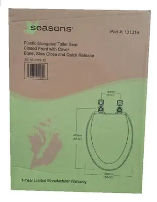 Seasons Plastic Elongated Toilet Seat with Closed Front and Cover – Bone White