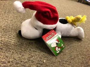 Snoopy and Woodstock moving and music playing figurine. snoopy snores to a tune and his belly shrinks and grows while his hat moves with his snoring.