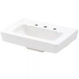 The Richmond Petite pedestal sink basin has a lipped outer edge to keep water from spilling over—a functional and aesthetically-charming feature that will enrich and bathroom. Coordinate this white vitreous china rectangular basin with a pedestal leg from the same St. Thomas Creations ensemble to complete the two-piece setup. Easily mount an 8 in. widespread faucet (not included) of your choosing to add a touch of elegance to any powder room.