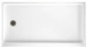 | This Veritek 32 in x 60 in. Retrofit Left-Drain Shower Floor is the perfect solution when removing a bathtub and replacing it with a shower | The shower floor fits standard plumbing placement without moving existing plumbing | Engineered for strength with molded-in structure supports | The pebbled, slip-resistant surface resists mold and mildew | The Veritek material has a matte finish with no surface coating to chip or crack | Lower threshold height of 3-5/16″ provides easy access