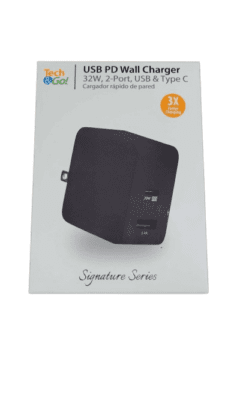Tech&Go USB PD 32w 2-Port Wall Charger in Black with USB + Type C Ports quantity