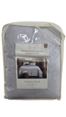 Turn your bedroom into a soothing, restful retreat with this Washed Waffle-Weave Comforter Set from Threshold™. This comforter set includes a woven comforter with a washed design, as well as two matching pillow shams for a complete, cohesive look. Plus, the sham comes with envelope closures to keep inserts neatly tucked in. Thanks to the lightweight design made from 100% cotton shell with polyester fill, you’ll keep cozy and comfy whether you’re curled up in front of the TV or enjoying a good night’s sleep.