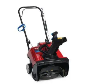 Tackle small driveway/walkway jobs in no time with the Toro Power Clear Single-Stage 18 in. Gas Snow Blower. Quickly and easily clear 18 in. wide by 12 in. deep snow, and blast compacted snow and ice where you want it up to 25 ft. Ideal for concrete and asphalt surfaces that can park up to 9 cars and 2 – 9 in. of snow at one time. The compact design and foldable chute allows for easy storage and leaves room in the garage room for what matters. Plus, you have peace of mind knowing that Toro stands behind this product with a full warranty, not just limited coverage. Count on it.