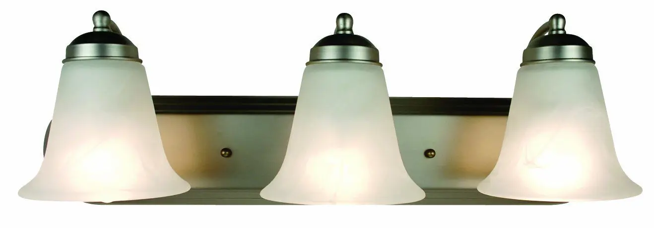 The cornerstone of the Cabernet Collection is elegance, and this 3-Light Bath Bar is no exception. Combining a sophisticated brushed nickel finish with posh white marbleized shade, you will find no better way to highlight the charm of your home. With its superb quality, and affordable price this fixture is sure to tastefully indulge your extravagant side.