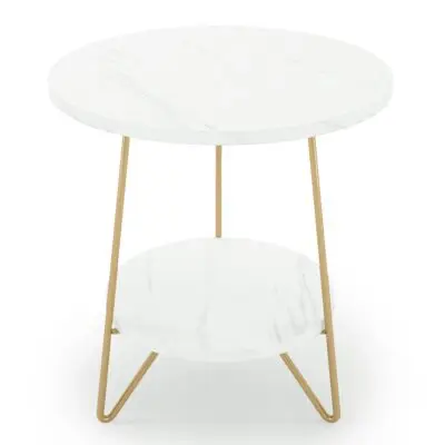 Our white faux marble end table with gold-tone hairpin legs brings luxury to any modern interior. Measuring 18.7’’L x 18.7’’ W x 21.6’’H, it’s perfect for small spaces.