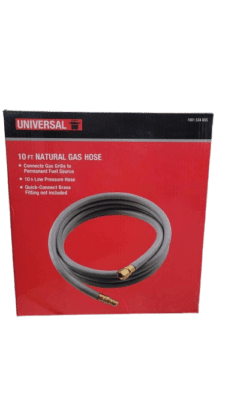 Attach your natural gas grill or RV to permanent fuel sources with this 10 ft. Natural Gas Hose Kit. The hose kit features long lasting brass fittings for durability and a 10 ft. low-pressure rubber hose. It is not designed for conversion of a propane grill to a natural gas grill.