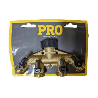 Two hoses are better than one… but four hoses, now that’s just awesome! Turn your single water source into four with the 4-way manifold. The valves allow you to control water flow from 4 different sources. Extra large swivel nuts provide easy grip and turn. Large internal ball valves ensure leak proof seal when closed. Easy-on swivel connector assures complete and accurate connection to water source. Designed with heavy-duty brass construction for extra strength, durability and longevity. This shut off connector allows you to have complete control of your water flow and watering source. Attach four different hose attachments and increase your efficiency and convenience. The 4-way manifold is the perfect watering solution for your lawn and garden.
