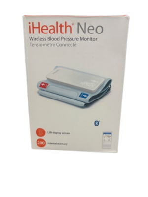Smart arm blood pressure monitor iHealth Neo (BP5S) Manage your blood pressure simply and effectively Measure your blood pressure and your heart rate with the smart arm blood pressure monitor iHealth Neo. Track your results on its display or on the screen of your smartphone with iHealth MyVitals app. iHealth Neo is a medical device. Advantages Your blood pressure under control The connectable blood pressure monitor, iHealth Neo, for the arm measures blood pressure, heart rate and detects irregular heart beat (arrhythmia). The universal size (22-42cm) adjustable cuff of this blood pressure monitor fits all shapes and sizes. iHealth Neo can be used with or without connection. See the result directly on its display or the free iHealth MyVitals app. The app With iHealth MyVitals, our free app available for Android and iOS, iHealth Neo provides you with complete tracking and data history in graph form. You can compare your results against the World Health Organization (WHO) recommendations, set reminders, including the 3 measurements rule (3 measurements in the morning and 3 in the evening for 3 days) and securely share your results with your doctor or your family.